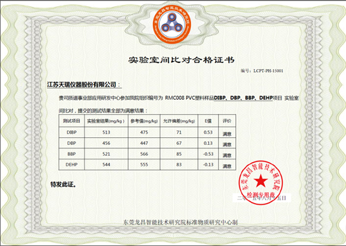 附录1:实验室间比对合格证书(塑化剂)
