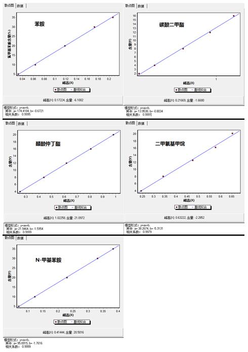 2.2.2 校准用的标准物质:苯胺、N-甲基苯胺、二甲氧基甲烷、乙酸仲丁酯、碳酸二甲酯均为分析纯或分析纯以上级别试剂(中国石油科学研究院提供)。