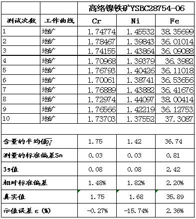 以下使用EDX P730S型对红铁矿实际测试的所得的谱图,工作曲线等相关数据: