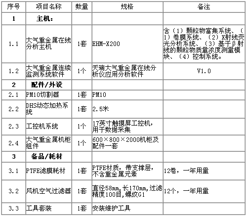 表1 8868体育官网登录入口 EHM-X200大气重金属监测仪技术参数