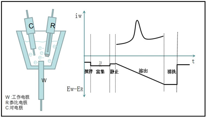 在一定的电位下,使待测金属离子部分地还原成金属并溶入微电极或析出于电极的表面,然后向电极施加反向电压,使微电极上的金属氧化而产生氧化电流,根据氧化过程的电流一电压曲线进行分析的伏安法。 阳极溶出伏安法以其极低的成本与高灵敏度的特点、目前在欧美正取代传统的原子吸收方法大量应用于环境应急监测、自来水检测、电镀和表面处理行业废水检测、食品、制药、医院废水监测等方面。