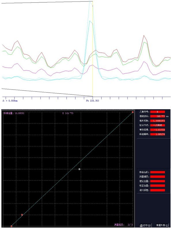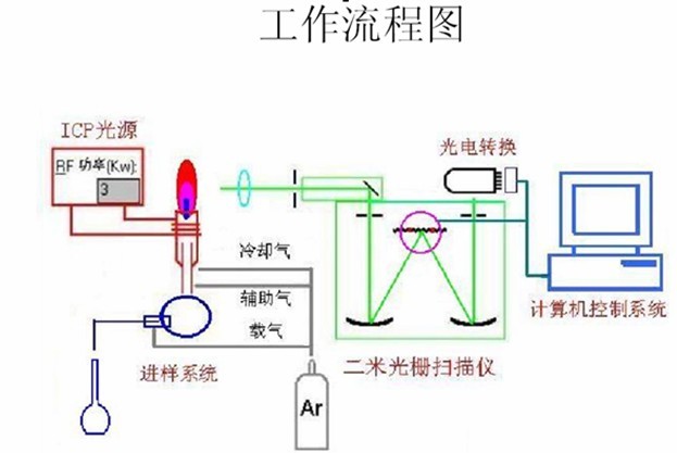 溶液进入等离子体光源中受激发,释放出光子,形成该元素的特性谱线,谱线的强度和蒸汽中原子的浓度成正比,进行定量测定。