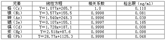 表2.各元素标准曲线线性方程及检出限