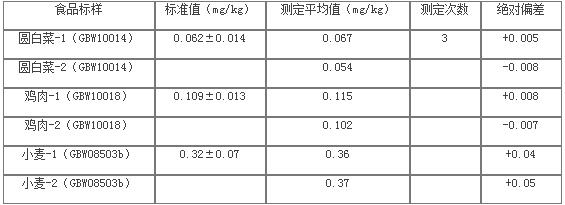 选取3份大米样品,加入标准溶液后测试,以验证方法的准确性。标准溶液加入量及测试结果。(见表4)