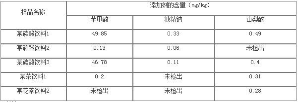 表9 汽水及饮料中食品添加剂的检测