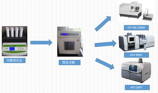 8868体育官网登录入口采用微波消解方式对食用油样品进行消解,并采用电感耦合等离子体质谱仪ICP-MS2000E、原子吸收分光光度仪AAS9000和原子荧光光谱仪AFS200,可以同时测定植物油中As、Pb、Cd、Hg等重金属元素含量,适用于不同生产工艺及各种食用油样品中重金属元素的测定。另外,采用电感耦合等离子体质谱法,还可以对食用油运输容器中微量或痕量元素的迁移量进行测试分析,以及与色谱连用进行元素形态分析。