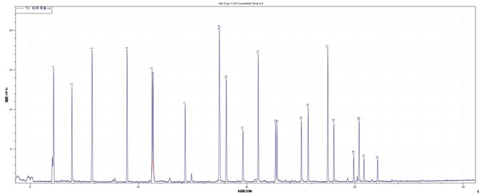 测定方式:TIC(FULL SCAN)定性(扫描范围:45~500amu),SIM模式定量