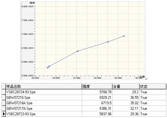 以下使用EDX 3600B型对萤石国标样GBW07252实际测试的所得的谱图,工作曲线等相关数据: