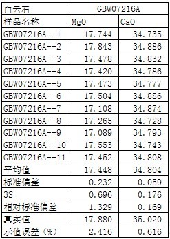 ④ .实际测试白云石国标样GBW07216A的数据如下为