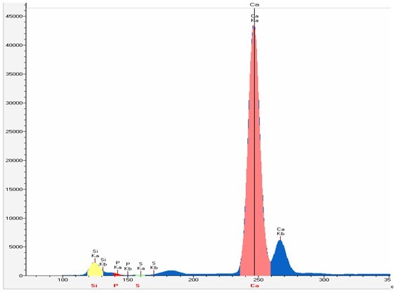 以下使用EDX 3600B型对白云石国标样GBW07216A实际测试的所得的谱图,工作曲线等相关数据: