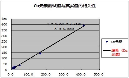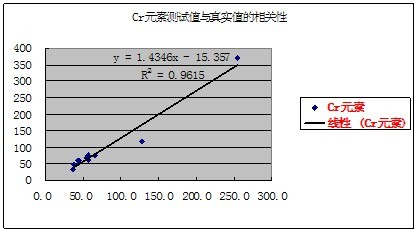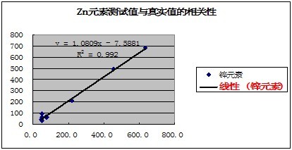 有关元素的测试值与真实值的相关性如下表示: