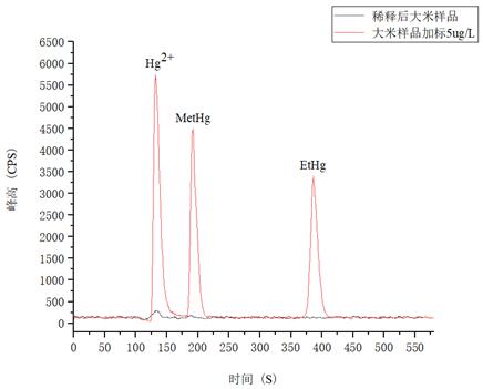 本文参考国家卫生和计划生育委员会发布的《GB 5009.17-2014 食品中甲基汞的测定》,通过HPLC-ICPMS联用,采用C18柱,利用等度洗脱的方式对稀酸浸提后的大米进行了分析,同时对样品采取了加标处理,且加标回收率良好。测试结果表明,该方法能够快速准确地进行大米样品中汞形态的分析。