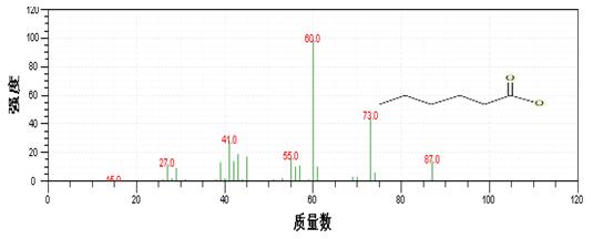 1-乙醛,2-乙酸乙酯,3-乙醇4-仲丁醇,5-正丙醇,6-1-甲基环己醇,7-2-甲基-丙醇,8-戊酸乙酯,9-正丁醇,10-正己酸乙酯,11-旋性戊醇,12-异戊醇,13-正戊醇,14-二糠基醚,15-甲基乙酰甲醇,16-庚酸乙酯,17-2,5-二甲基吡嗪,18-乳酸乙酯,19-乙酸,20-糠醛,21-2-甲基-戊酸乙酯,22-戊二酸,23-丙酸,24-异丁酸,25-4-羟基丁酸内酯,26-正丁酸,27-糠醇,28 -琥珀酸二乙酯,29-异戊酸,30-3-甲基-2-(5H)-呋喃酮,31-正戊酸,32-苯乙酸乙酯,33-正己酸,34-苯乙醇,35-十一酸乙酯,36-正辛酸,37-月桂酸乙酯,38-棕榈酸乙酯,39-十六碳烯酸乙酯,40-油酸乙酯,41-亚油酸乙酯,42-棕榈酸